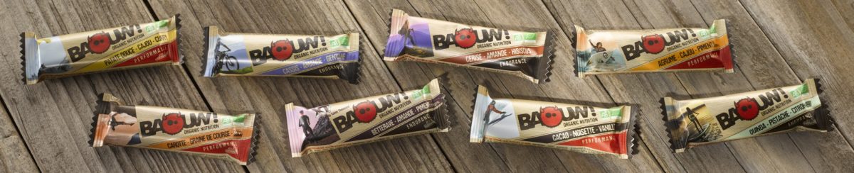 Si peu… mais tellement. Baouw, c’est un concept simple : une nutrition à emporter hautement digeste et pleine de goût. Baouw, c’est un savoir-faire technique, expert, pour mettre en barres cette idée de départ. C’est une nutrition accessible à tous, petits et grands, qu’on peut utiliser au quotidien. Des ingrédients simples, naturels, les plus bruts possible, pour des barres énergétiques made in France et des purées pour l’effort et le grignotage. Certifiées BIO.