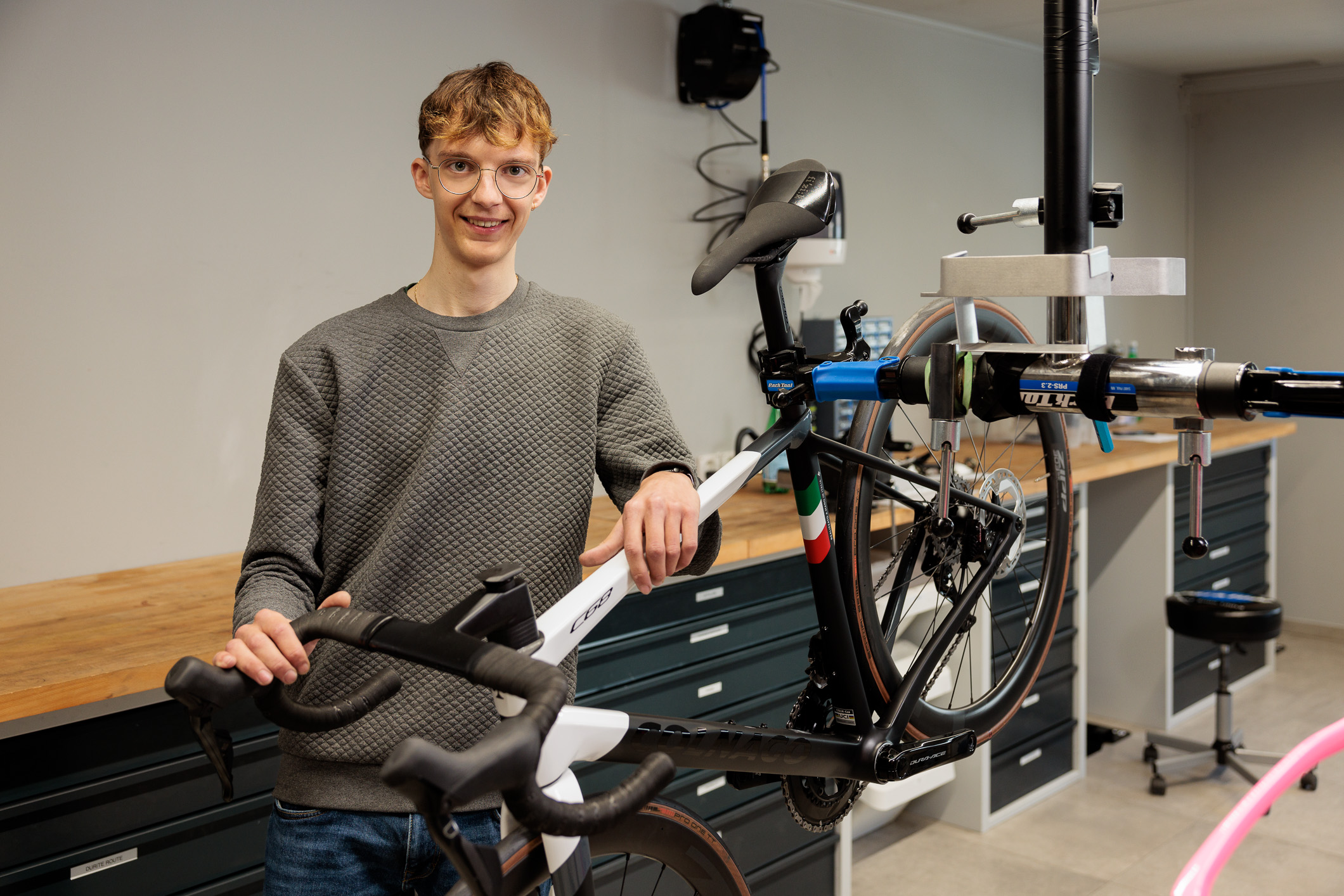 Clément s’occupe de la vente des vélos de route et gravel.