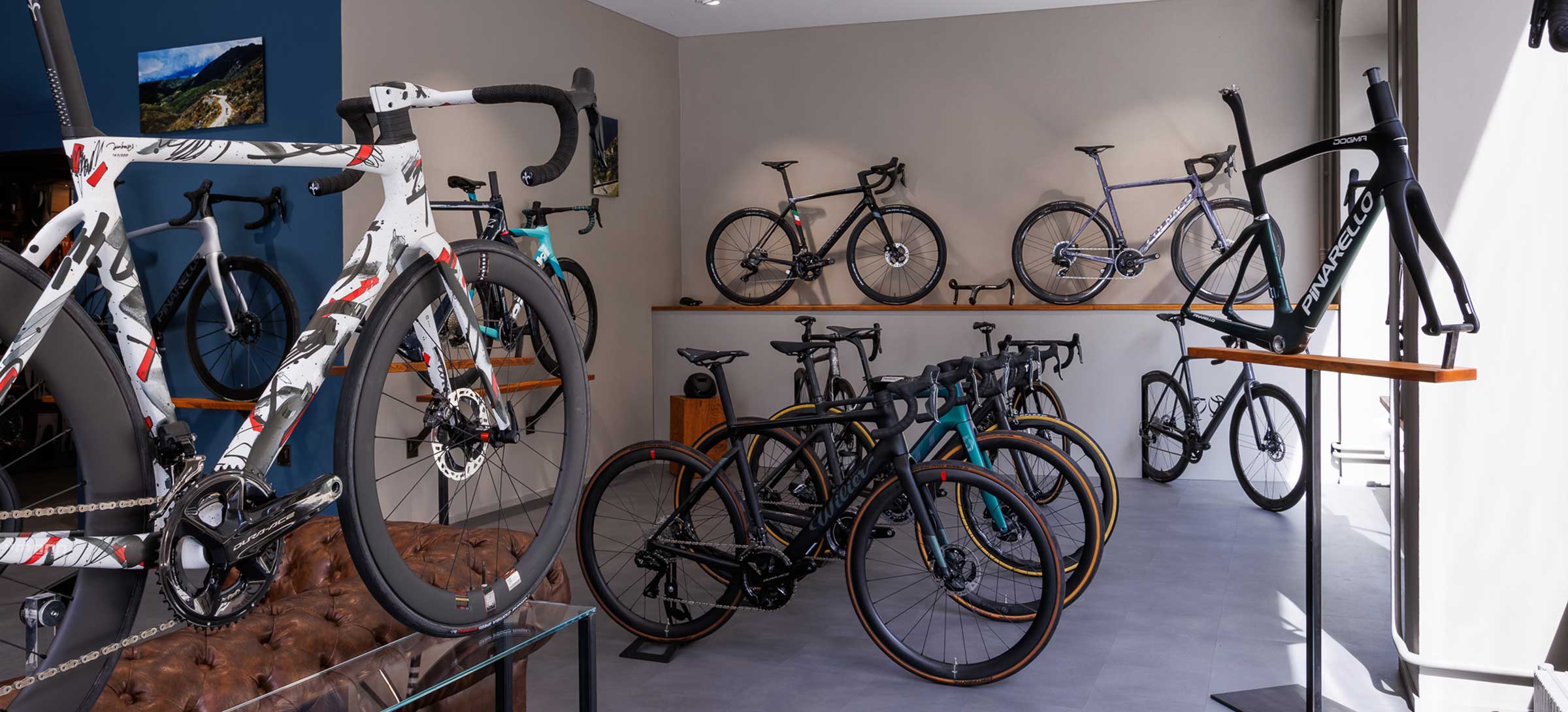 Depuis 1998, c’est ici que tout a commencé : un espace pensé comme une véritable galerie d’art du vélo de route et du gravel, où nous vous présentons un très large choix de marques et de modèles soigneusement sélectionnés. Nous nous efforçons de vous offrir des produits de qualité, des marques ayant une histoire et qui sont en adéquation avec notre philosophie : le détail, l’exigence et la passion du beau vélo.